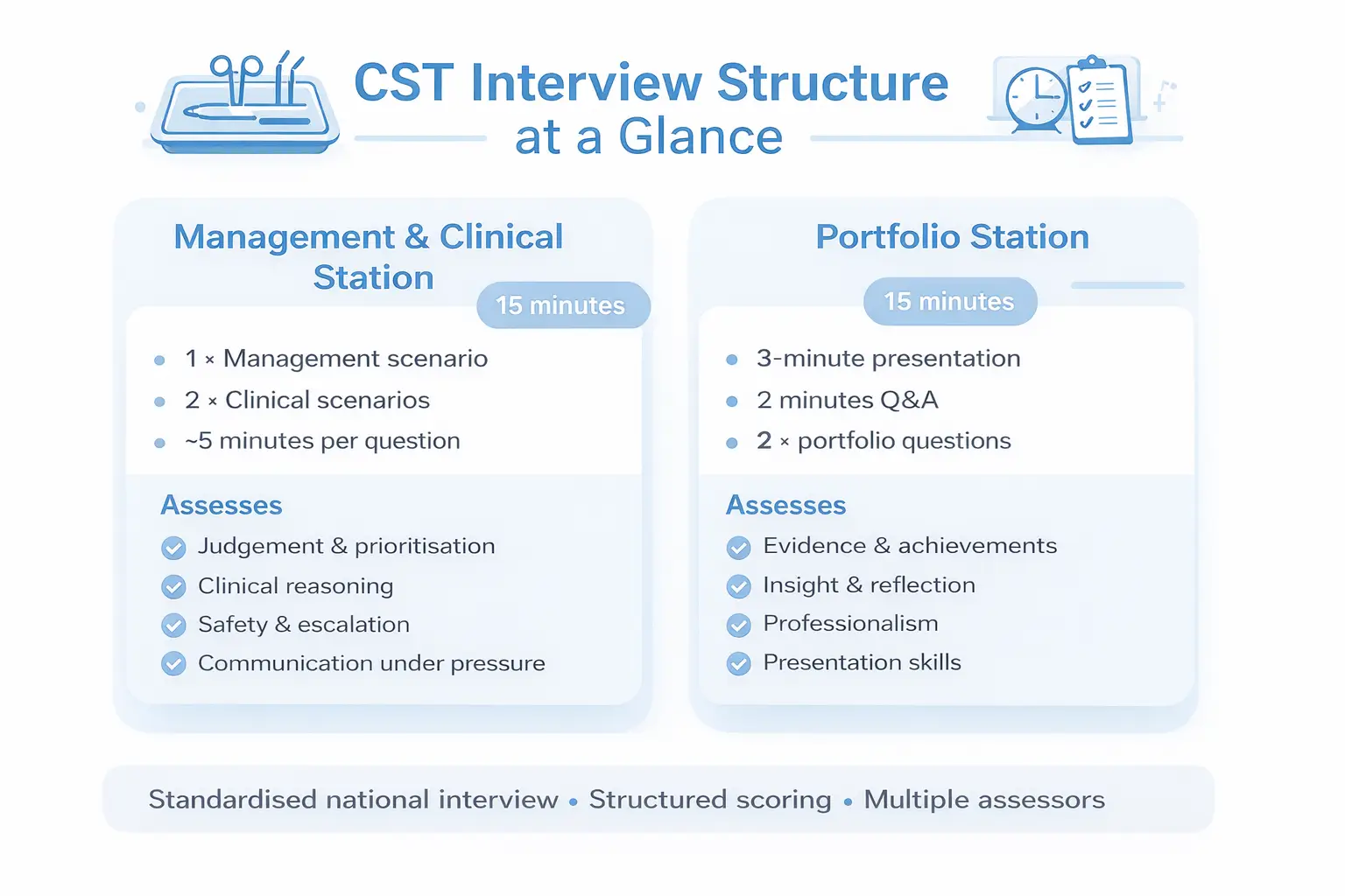 While the CST interview includes clinical and management scenarios, assessors are not simply looking for the “correct” answer. They are assessing how candidates approach surgical problems, prioritise patient safety, recognise limitations, and make decisions under pressure.